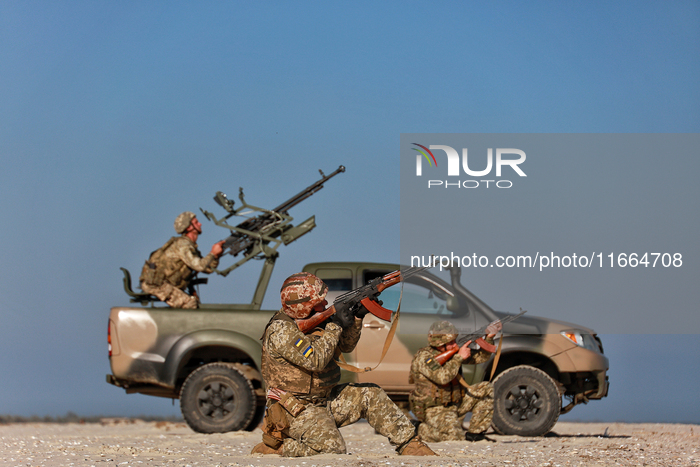 Servicemen of a mobile fire group of the State Border Guard Service of Ukraine are on a mission in Odesa region, southern Ukraine, on October 10, 2024. (Photo by Ukrinform/NurPhoto)