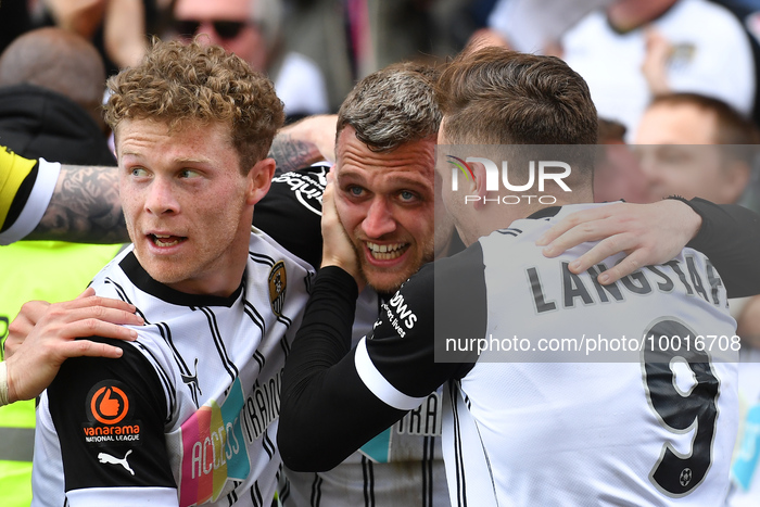 Aden Baldwin of Notts County celebrates after scoring a goal to make it 2-2 during the Vanarama National League Play-Off Semi Final match between Notts County and Boreham Wood at Meadow Lane, Nottingham on Sunday 7th May 2023. (Photo by Jon Hobley/MI News/NurPhoto)