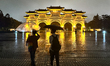 People holding up umbrellas congregate around the Pilar of Shame during the commemoration of the 34th anniversary Tiananmen Massacre that took place on June 4th, 1989 in China, at the Liberty Square, in Taipei, Taiwan, on June 4, 2023. As Beijing continues its crackdowns on Hong Kong, Macau and the Mainland, Taiwan remains the only Chinese-speaking region for pro-democracy vigils and protests to be held. (Photo by Ceng Shou Yi/NurPhoto)