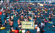 A general view of Jinshan City Beach in Shanghai, China is seen on August 13, 2023, as Shanghai remains in a heatwave and the government issues an orange alarm to warn people to take precautions against the heat (Photo by Ying Tang/NurPhoto).