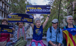 Protest by the Catalan National Assembly (ANC) at the doors of the Sant Pau hospital, where the transport ministers of the different states of the European Union meet today, in Barcelona, Spain, on September 22, 2023. The protesters demand that the only possible way to improve the general situation in Catalonia is independence. (Photo by Marc Asensio/NurPhoto)