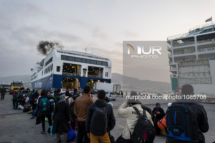 Refugees are on 02/03/2016 at the port of Mytilene on Lesbos, Greece to get on to a ferry to the mainland. To avoid a backlog at the border with Macedonia ferries were reduced to the mainland and reduces ticket quotas for refugees. (Photo by Markus Heine/NurPhoto)