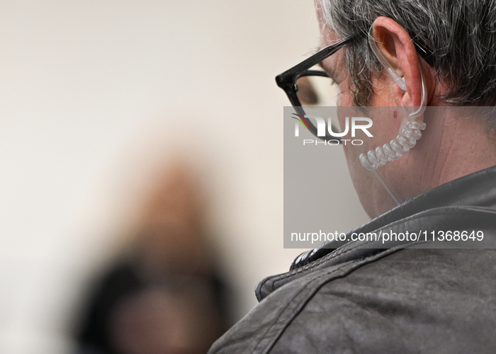 ALENCON, FRANCE - JUNE 20: An undercover police officer seen at French Prime Minister Gabriel Attals campaign event in the Alençon market ahead of the legislative election, on June 20, 2024, in Alencon, Orne, France. (Photo by Artur Widak/NurPhoto)