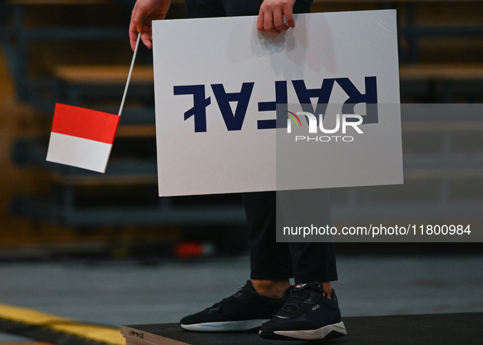 KRAKOW, POLAND - NOVEMBER 16: Mayor of Warsaw Rafal Trzaskowski during a meeting with voters at Nowa Huta's Hala Com-Com Zone, on November 16, 2024, in Nowa Huta, Krakow, Poland. On November 22, a primary election will be held to select the Civic Coalition's presidential candidate; the results will be announced the following day. (Photo by Artur Widak/NurPhoto)