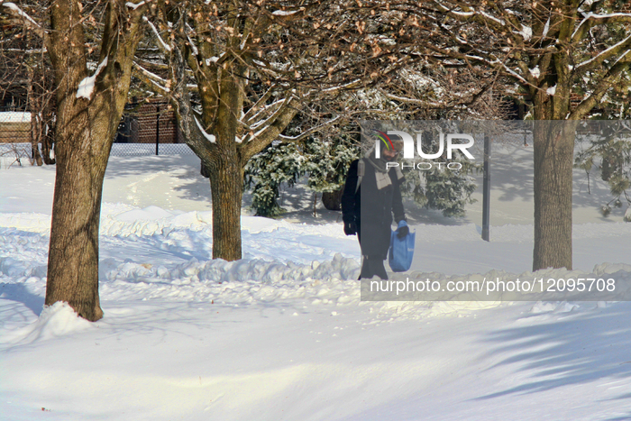 A man walks in the snow on a cold winter day in Toronto, Ontario, Canada, on February 14, 2025. (Photo by Creative Touch Imaging Ltd./NurPhoto)