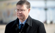 European Commissioner for Economic Affairs, Production, Implementation and Facilitation Valdis Dombrovskis poses for a picture by the destroyed Russian equipment in Mykhailivska Square, Kyiv, Ukraine, on March 20, 2025. (Photo by Danylo Antoniuk/Ukrinform) NO USE RUSSIA. NO USE BELARUS. (Photo by Ukrinform/NurPhoto)