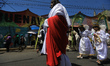 Faithful in Iztapalapa take part in the reenactment of the life of Jesus of Nazareth for the celebration of Palm Sunday, which marks the beginning of Holy Week. These Catholic celebrations have been held in Iztapalapa for more than 39 years in Mexico City, Mexico, on April 13, 2025. (Photo by Ian Robles/ Eyepix Group) (Photo by Eyepix/NurPhoto)