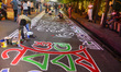 Hindu Bengali youths, along with others, paint designs on the road during celebrations to mark the eve of the Bengali New Year in the Bengali calendar in Siliguri, India, on April 14, 2025. (Photo by Diptendu Dutta/NurPhoto)