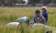 Egyptian farmers harvest flax in Sharqia Governorate, Egypt, on April 14, 2025. Flax is exported to Europe and China and is used in the manufacture of fabrics and banknotes. Its waste is used in the animal feed industry. (Photo by Mahmoud Elkhwas/NurPhoto)
