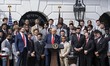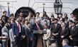 President Donald J. Trump hosts The Ohio State University, the 2025 College Football National Champions, at the White House in Washington, DC, on April 14, 2025. (Photo by Andrew Thomas/NurPhoto)