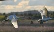 Mute swans take to flight during the morning hours at the Fernald Nature Preserve in Ross, Ohio, on April 15, 2025. (Photo by Jason Whitman/NurPhoto)