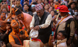 A crowd of revelers watches the annual ''tongue piercing'' ritual in Bode, Nepal, on April 15, 2025. Locally called ''Jibro chedne Jatra,'' this event is observed annually on the second day of the Nepali New Year. The medieval town, which used to be a separate state in the medieval age of Nepal, observes this festivity with grandeur. (Photo by Subaas Shrestha/NurPhoto)