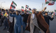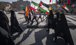 A young veiled woman waves a Palestinian flag while participating in an anti-Israeli rally at the holy mosque of Jamkaran near the holy city of Qom, 156 km south of Tehran, Iran, on April 15, 2025. (Photo by Morteza Nikoubazl/NurPhoto)