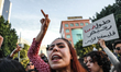 A demonstrator holds up a placard reading in Arabic, ''the walls on which the constitution is written are collapsing on the youth of the revolution,'' during a demonstration held by hundreds of Tunisians in Tunis, Tunisia, on April 15, 2025, to protest government negligence following the deaths of three schoolchildren from Mezzouna, Sidi Bouzid, after a school wall collapses. The demonstrators call for the fall of the regime and chant slogans against Tunisian President Kais Saied. The UGTT union observes a school strike as a sign of mourning and to denounce what it describes as 'the authorities' failure to find real and serious solutions to save public schools'. (Photo by Chedly Ben Ibrahim/NurPhoto)