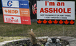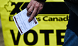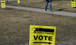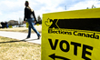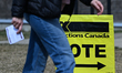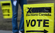 EDMONTON, CANADA - APRIL 20: An Elections Canada signs are visible in front of one of the polling stations in the Edmonton Gateway riding district, in Edmonton, Alberta, Canada on April 20, 2025. Advance voting for the 45th Canadian General Election takes place from April 18-21 across the country, including through the Easter long weekend. (Photo by Artur Widak/NurPhoto)
