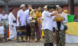 Hindus pray during Galungan Day prayers at the Wana Kertha Jagadnatha Great Temple in Palu, Central Sulawesi, Indonesia, on April 23, 2025. Hindus in the region and surrounding areas attend the Galungan Day prayer ceremony as a form of gratitude to God for the victory of Dharma (truth) over Adharma (evil). (Photo by Basri Marzuki/NurPhoto)