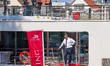 A Viking river cruise ship docks along the Danube River in Regensburg, Upper Palatinate, Bavaria, Germany, on April 19, 2025. The vessels are part of the city's vibrant river tourism industry, offering multi-day cruises through Central Europe with amenities for international passengers. (Photo by Michael Nguyen/NurPhoto)