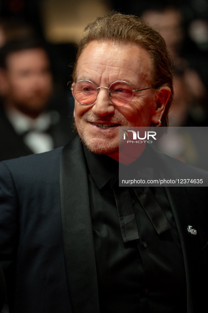 Bono attends the ''Bono: Stories Of Surrender'' red carpet at the 78th annual Cannes Film Festival at Palais des Festivals in Cannes, France, on May 16, 2025. (Photo by Luca Carlino/NurPhoto)
