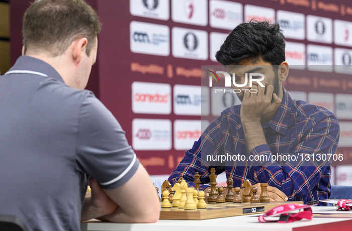 Gukesh Dommaraju of India plays against Shawn Rodrigue-Lemieux of Canada during the opening day and first round of the FIDE World Rapid & Blitz Championships 2025 at Sports and Events Complex, Qatar University in Doha, Qatar, on December 26, 2025. (Photo by Noushad Thekkayil/NurPhoto)