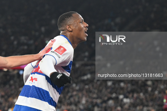 Richard Kone of Queens Park Rangers celebrates after scoring the team's first goal during the Emirates FA Cup Third Round match between West Ham United and Queens Park Rangers at the London Stadium in Stratford, England, on January 11, 2026. (Photo by Kevin Hodgson/MI News/NurPhoto)