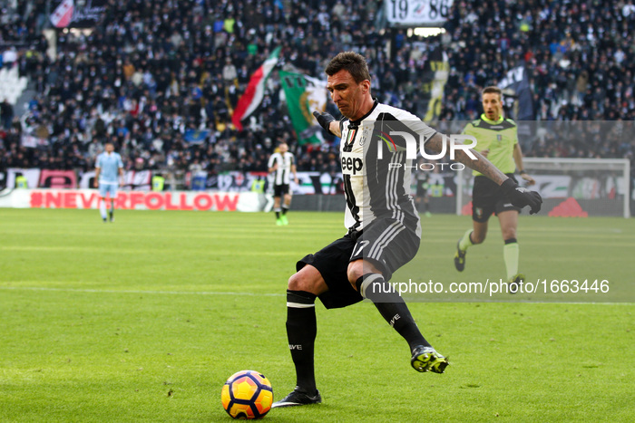 Juventus forward Mario Mandzukic (17) in action during the Serie A football match n.21 JUVENTUS - LAZIO on 22/01/2017 at the Juventus Stadium in Turin, Italy. (Photo by Matteo Bottanelli/NurPhoto)