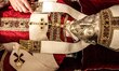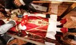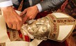 (EDITOR'S NOTE: File photo) A moment of dressing of Pope Celestine V, also known as Pope of the great refusal, in L'Aquila, on May 5, 2013. - The new mask of Celestine V is silver and reproduces the exact features of the face of the Saint and it was made after a reconnaissance on the remains, which took place at the hands of experts. The old mask was of wax, and had the appearance of Cardinal Carlo Confalonieri, from March 27, 1941 al 22 February 1950 Archbishop of L'Aquila. Pope Saint Celestine V was the last pope before Pope Benedict XVI to retire. (Photo by Manuel Romano/NurPhoto)