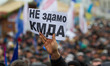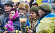 People hold the plakards which say "We'll not give you of city hall" during a new, mass demonstration on Sunday. The protest on Kiev‚??s central Independence Square, is the 11th since demonstrators first rose up when President Viktor Yanukovich rejected a key EU pact in favour of closer ties with Russia. (Photo by Sergii Kharchenko/NurPhoto)