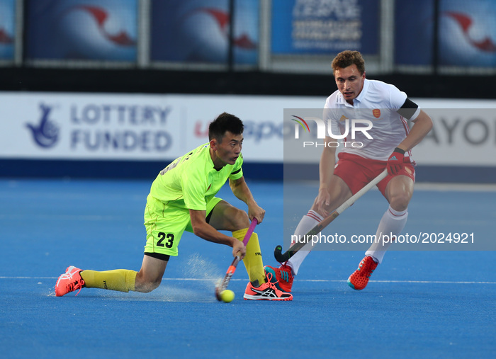 GUO Zixiang of China during The Men's Hockey World League 2017 Group A match between England and Chinaat The Lee Valley Hockey and Tennis Centre in London on June 15, 2017 (Photo by Kieran Galvin/NurPhoto)