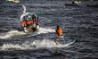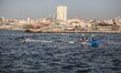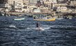 ITA: Sci nautico dei palestinesi al porto di Gaza. EN: Palestinian skiers skating through a presentation of entertainment in the port of Gaza City on May 17, 2013. Photo: Majdi Fathi/NurPhoto