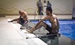ITA: Palestinesi con una gamba amputata dopo esser stati colpiti in un raid aereo israeliano nel 2009 nuotano in piscina durante un corso di nuoto. I corsi sono stati organizzati nel tentativo di aiutarli a liberarsi dal trauma e dalla frustrazione. EN: Palestinian leg amputated after being hit in an Israeli air raid in 2009, swims in the pool during a swimming lesson.Is the organization of training courses for swimming in an attempt to help them get rid of the trauma and frustration. Photo: Majdi Fathi/NurPhoto