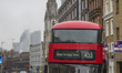 The new iconic buses in the streets of London, the red double decker Routemaster buses. They were introduced in 1956. Nowadays the buses are moving with hybrid electric diesel engines. The red bus become one of the landmarks of London and symbol for Great Britain. (Photo by Nicolas Economou/NurPhoto)