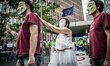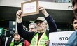 Barcelona (Spain), May 30, 2013 - 'Trial to Justice' a group of platforms protest in front of the main courts of Barcelona, Spain, against budget cuts and government decissions. The protest is organized by the plarform of workers of justice, but is supported by PAH (affected by mortgage), iaioflautes (senior protesters), and other sectors like public education and health workers. Photo: Esteban Mora/NurPhoto
