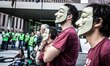 Barcelona (Spain), May 30, 2013 - 'Trial to Justice' a group of platforms protest in front of the main courts of Barcelona, Spain, against budget cuts and government decissions. The protest is organized by the plarform of workers of justice, but is supported by PAH (affected by mortgage), iaioflautes (senior protesters), and other sectors like public education and health workers. Photo: Esteban Mora/NurPhoto