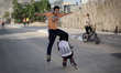 Palestinian children playing roller-skating in Nuseirat refugee camp