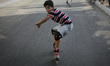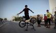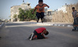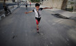 Palestinian children playing roller-skating in Nuseirat refugee camp