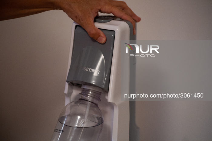 A person prepares the carbonated water with the sodastream machine. The American beverage comporation Pepsi buys the Israeli Water company Sodastream. Pepsi pays 3.2 billion Dollars for Sodastream. Sodastram was critized, because they run a factory in the by Israel occupied Palestinian town of Ma'ale Adumim. (Photo by Alexander Pohl/NurPhoto)