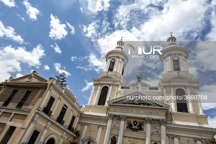 Santiago, Chile. 14 January, 2019. In Alonso de Ovalle Street No. 1480, next to the San Ignacio School are the Jesuit religious accused of sexual crimes, the priests condemned by the Vatican Jaime Guzmán, the brother Raúl González and the priest Leonel Ibacache with an ongoing investigation. The former provincial Eugenio Valenzuela is sanctioned for improper conduct and Juan Pablo Cárcamo for abuse of conscience and transgression in the sexual sphere to an adult woman. In well-conditioned rest homes, with interior patio, reading areas, rest and kitchen service live religious accused or investigated for sexual crimes against minors. The main houses of this type are the residence of the Jesuits, in the center of Santiago and the house of the Marist Brothers in the Providencia neighborhood in front of the Apostolic Nunciature. Pope Francis met these days with the Chilean Bishops showing their support what annoyed the victims of sexual abuse, the Scicluna report is still expected to be sent to the Chilean justice so that the investigations can be finalized and the guilty parties formalized in Santiago, Chile. (Photo by Fernando Lavoz/NurPhoto)