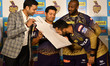Andre Russell , Piyush Chawla and Dinesh Karthik captain of Kolkata Knight Riders during LUX lunches India's first ever Scented Vest Range from Lux Cozi on April 17,2019 in Kolkata city,India. (Photo by Debajyoti Chakraborty/NurPhoto)