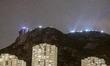 Protester are seen holding up lights and pointing lasers pointers at the top of Lion Rock Mountain in Hong Kong on September 13, 2019, Hundreds of Protester climb up to Lion Rock a mountain in Hong Kong — Today’s also Mid-Autumn Festival with protesters gathering in parts of Hong Kong singing songs. (Photo by Vernon Yuen/NurPhoto)