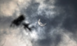 The phenomenon of a rare "ring of fire" solar eclipse as seen from Jakarta Planetarium, Ismail Marzuki Park, Jakarta, on December 26, 2019. The phenomenon of "ring of fire" solar eclipse just seen as partial solar eclipse in Jakarta, with the moon covering 70% of solar plate. (Photo by Aditya Irawan/NurPhoto)