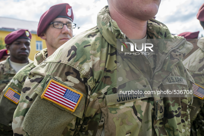 US soldiers during opening ceremony Ukrainian-US Exercise Fearless Guardian at International peacekeeping and security centre, on April 20, 2015 in Yavoriv, Lviv region, Ukraine. (Photo of Oleksandr Rupeta/NurPhoto)