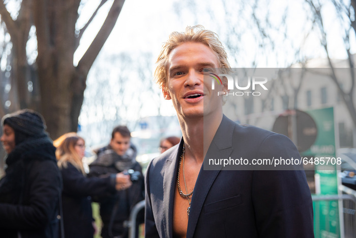 Cody Simpson attends the Emporio Armani fashion show during Milan Men's Fashion Week Fall/Winter 2020/2021 on January 11, 2020 in Milan, Italy (Photo by Alessandro Bremec/NurPhoto)