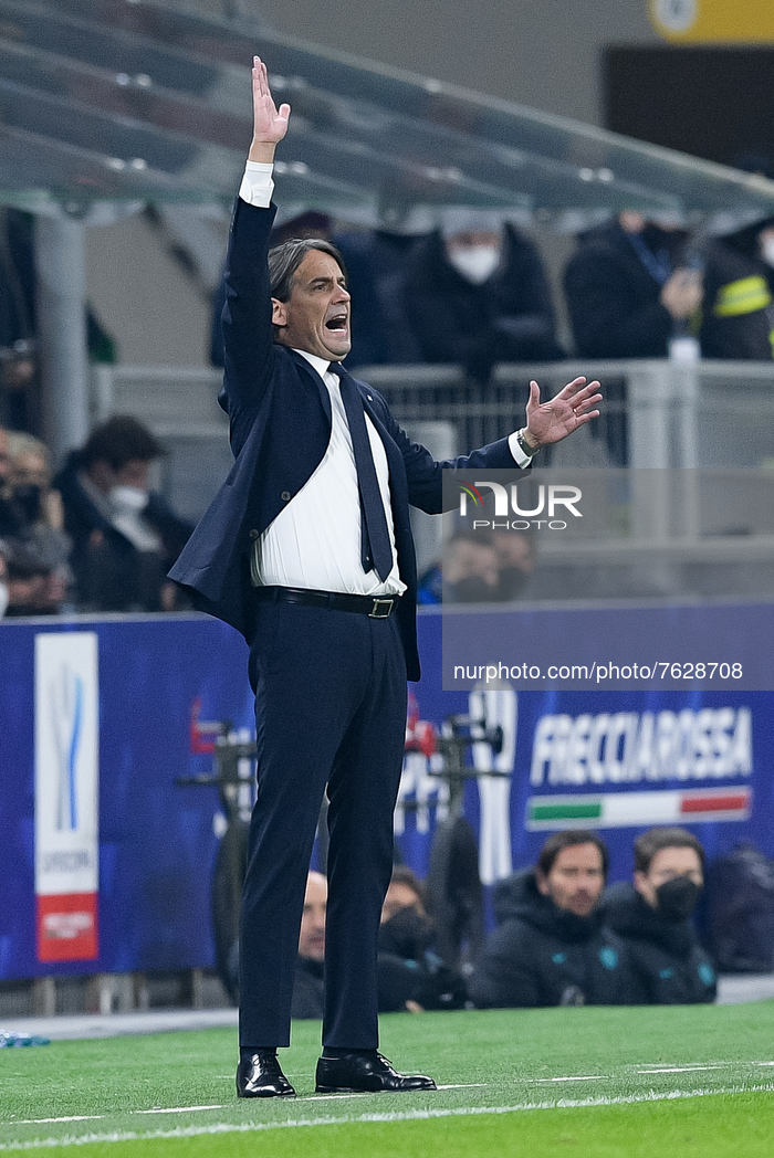 Simone Inzaghi manager of FC Internazionale yells and gestures during the Italian SuperCup Final match between FC Internazionale and Juventus FC at Stadio Giuseppe Meazza, Milan, Italy on 12 January 2022. (Photo by Giuseppe Maffia/NurPhoto)
