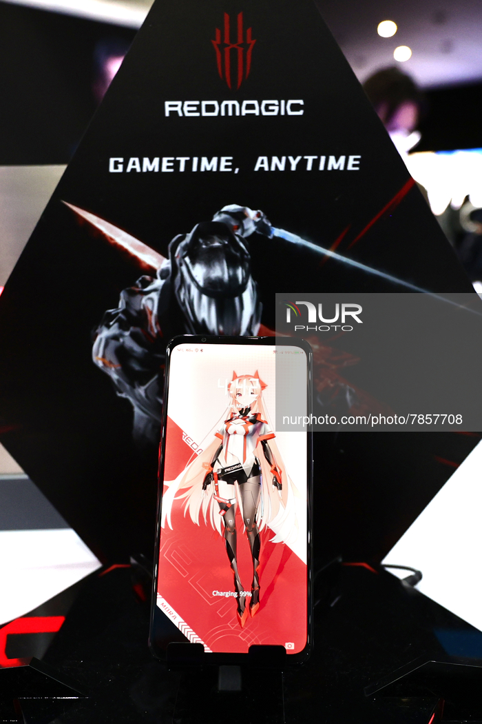 The Redmagic 7, the gaming smartphone sub-brand from the Chinese company Nubia, being exhibited at Mobile World Congress (MWC) the biggest trade show of the sector focused on mobile devices, 5G, IOT, AI and big data, celebrated in Barcelona, on March 3, 2022 in Barcelona, Spain. (Photo by Joan Cros/NurPhoto)