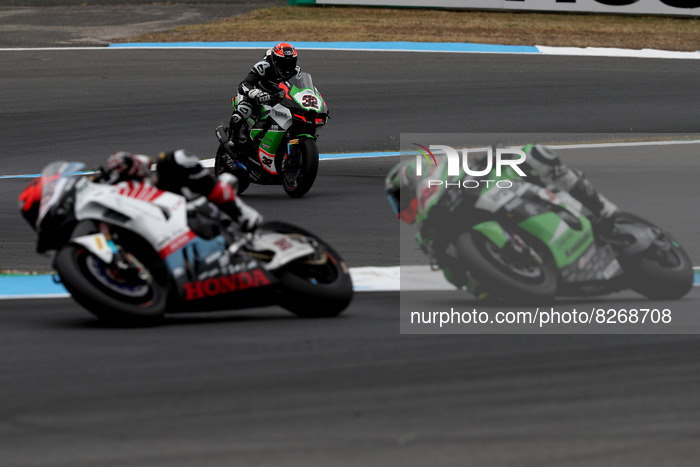 Spanish Isaac Vinales of TPR Team Pedercini Racing competes during the Race 1 of the FIM Superbike World Championship Estoril Round at the Circuito Estoril in Cascais, Portugal on May 21, 2022. (Photo by Pedro Fiúza/NurPhoto)
