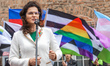 Ambassador of Ireland to Poland Ms. Emer O'Connell is seen. Gay pride participants holding rainbow (LGBT movement) flags and banners with equality and pro-gay slogans are seen in Gdansk, Poland on 28 May 2022 Equality march was organized by the gay rights movements to support LGBTQ (gay,lesbian,bisexual,transgender and queer) people rights in Poland. March was highly guarded by the anti-riot police unit. (Photo by Michal Fludra/NurPhoto)