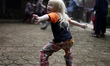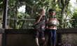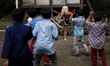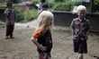 Lukman Nurhakim (7), one of the decendant of Albino, playing wih his friends at Ciburuy village, Garut district, West Java province, on June 9, 2022. (Photo by Aditya Irawan/NurPhoto)
