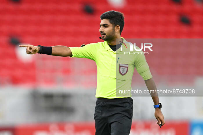 Referee, Yousef Yaqoub Al-Sharshani, reacts during the QNB Stars League match between Al-Wakrah SC and Al-Markhiya at the Ahmad bin Ali Stadium in Doha, Qatar on 29 August 2022. (Photo by Simon Holmes/NurPhoto)