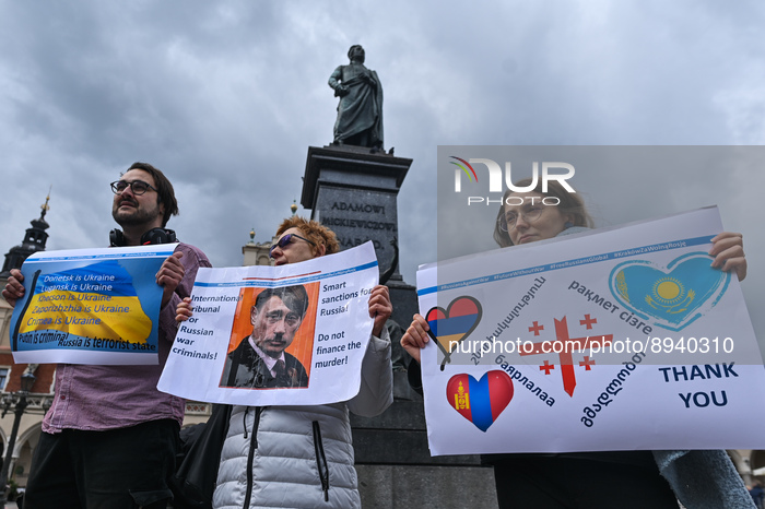 Members of the local Russian diaspora in Krakow are seen during a silent anti-war demonstration and protest against Vladimir Putin and the war with Ukraine at the Adam Mickiewicz Monument in Krakow's Main Square. On Sunday, October 02, 2022, in Krakow, Poland. (Photo by Artur Widak/NurPhoto)