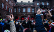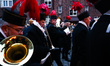 Members of the mining orchestra of Wieczorek Coal Mine celebrate 'Barborka' feast marching through Nikiszowiec district of Katowice, Silesian in Poland on December 4th, 2022. 'Barborka', celebrated on Saint Barbara’s Day, the patron of miners, is known in Poland as Miners’ Day. Miners from the Silesia region of Poland gather together for special celebrations and parades, wearing elegant black outfits and hats with different-colored feathers depending on their rank. (Photo by Beata Zawrzel/NurPhoto)
